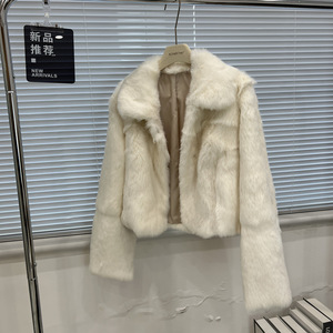 复古上东老钱风兔毛整皮毛一体短款皮草外套2025秋冬新款小个子女