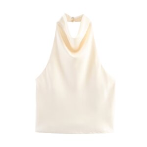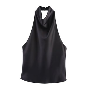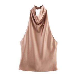 PB&ZA女装2025年秋季新款 纯色时尚丝缎质感挂脖款连衣裙3203317
