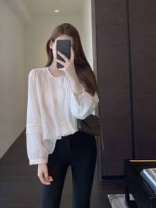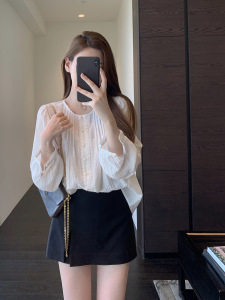 法式少女感 温柔甜美蕾丝拼接小衫宽松显瘦上衣女早秋新款G090117