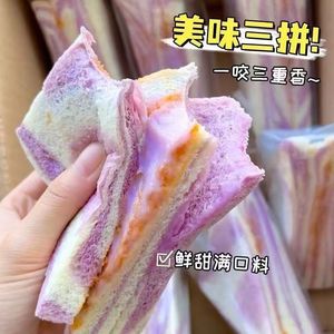 彩虹芋泥肉松三明治学生早餐代餐土司面包糕点小零食小吃食品批发