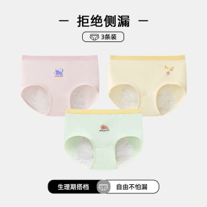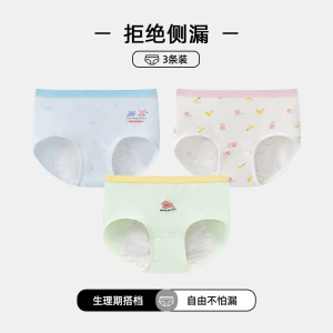 儿童内裤女童a类棉生理裤防侧漏少女学生大童三角裤短裤不夹屁屁