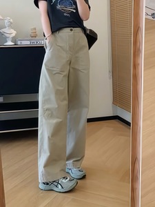 大码女工装阔腿休闲裤女2025年早秋季新款宽松显瘦百搭高腰拖地裤