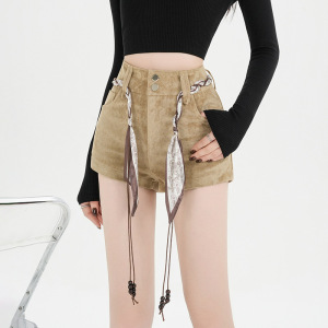 复古辣妹鹿皮绒短裤女秋季外穿靴裤2025新款高腰紧身a字包臀热裤