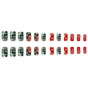 圣诞节甲片欧美风穿戴甲圣诞假指甲圣诞树中款穿戴式指甲贴片批发