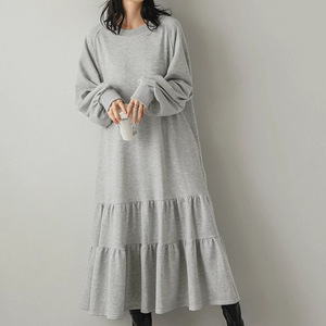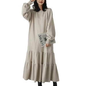 日系春夏卫衣连衣裙女 荷叶边裙摆宽松中长裙灯笼袖过膝裙