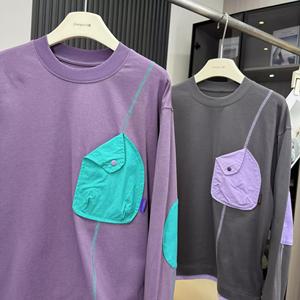 户外山系拼接口袋轻量化长袖T恤休闲运动宽松上衣 9208