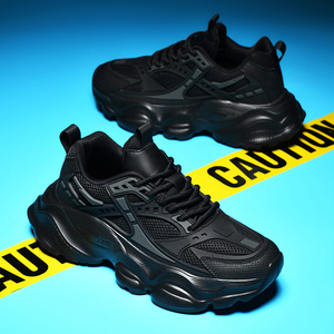 男士防滑耐磨运动鞋秋季厚底增高男鞋百搭休闲鞋黑色旅游鞋老爹鞋