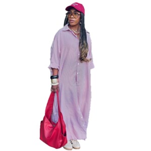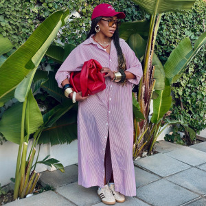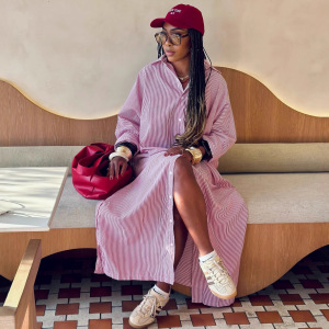 欧美大码休闲女装条纹Polo领单排扣长款连衣裙女非洲宽松百搭长裙