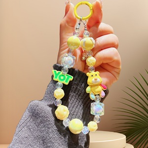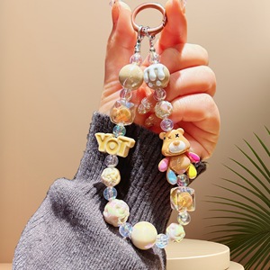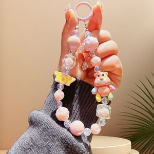 卡通暴力小熊手机链手绘珠串手机挂件包包汽车钥匙扣配饰厂家批发