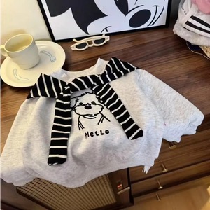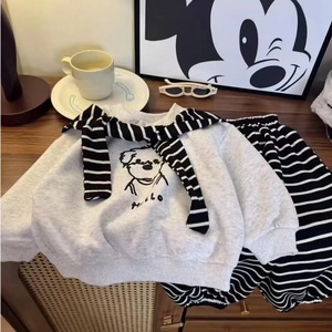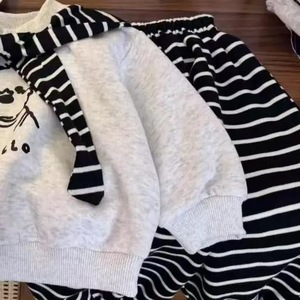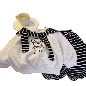 儿童秋季套装2025新款韩版男女童春秋款卡通披肩卫衣条纹裤两件套