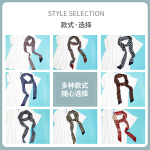 细窄长条桑蚕丝丝巾时尚商务男士真丝飘带围脖领巾双层14姆米丝巾