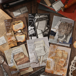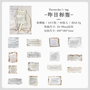 跨境ZABC素材贴纸包 回忆信笺系列 复古烧毁手帐装饰素材贴30张入