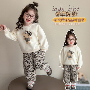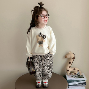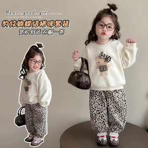 女童卫衣套装春装2025新款女宝宝开春洋气时髦豹纹女孩儿童春秋季