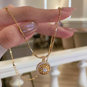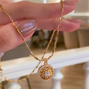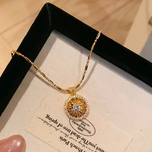 小红书爆款细闪雏菊罗盘吊坠项链高级感独特锁骨链毛衣链一件代发