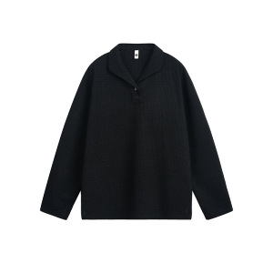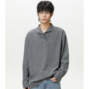 美式复古高智感宝石扣一片领正肩polo衫男长袖T恤秋季休闲打底衫