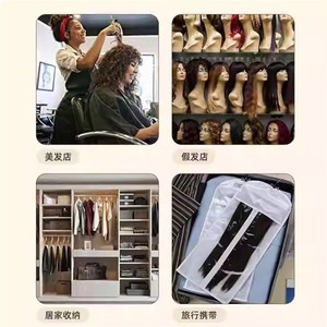 跨境假发收纳袋多色无纺布拉链透明制品假发防尘防潮包装袋批发
