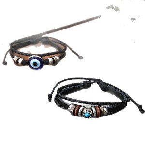 跨境新款个性手链男女套装手镯合金编织蜡绳可调节皮革套装眼睛