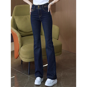 微喇牛仔裤女2025春秋季新款长裤子高腰修身弹力直筒马蹄喇叭裤女