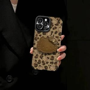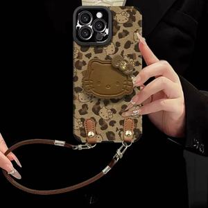 豹纹喵咪立体支架链条适用iPhone16promax苹果15手机壳14新款17软