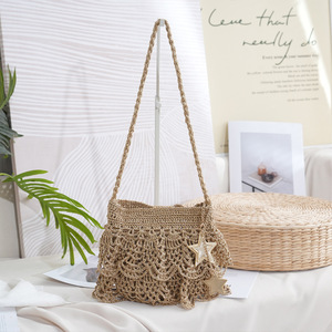 新款金丝线镂空编织包拉绳网包单肩手工日常海边沙滩包单肩包批发