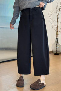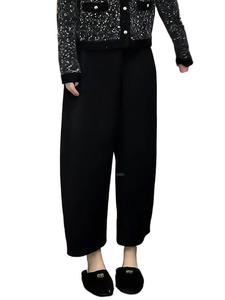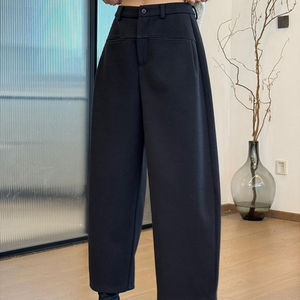 2025新款显瘦慵懒松弛感休闲裤黑色高腰直筒加厚阔腿裤子女秋冬