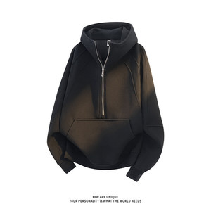 美式半拉链立领卫衣男款秋季小众解构外套cleanfit重磅硬挺连帽衫