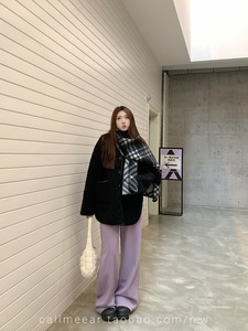 CallmeEar//【冬季保命裤】加绒卫裤女中低腰宽松直筒阔腿休闲裤