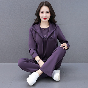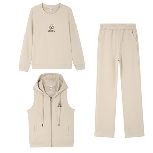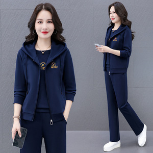 高棉卫衣卫裤马甲三件套女士春秋季时尚休闲运动套装直筒裤妈妈装