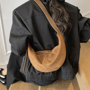 复古休闲斜挎饺子包女2025新款秋冬麂皮绒腋下包高级感洋气单肩包