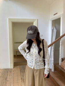 【You Think】十三行时尚通勤复古碎花显瘦百搭单排扣针织衫毛衣