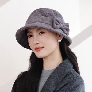 新款老太太加厚帽妈妈格子卷沿盆帽秋冬奶奶保暖盆帽优雅渔夫帽潮
