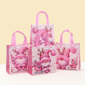 粉色少女心无纺布袋浪漫节日礼物手提袋氛围感粉色圣诞老人印花袋
