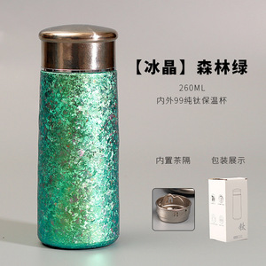 纯钛保温杯超轻高端商务高颜值便携式口袋杯晶钛花茶水杯现货批发