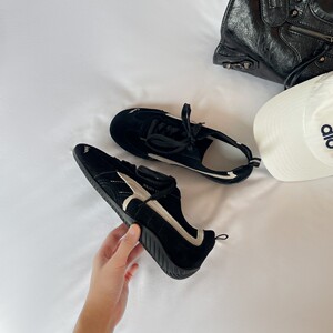 真皮复古黑色德训鞋女2025夏季新款系带百搭阿甘鞋运动休闲赛车鞋
