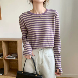 条纹长袖t恤女秋冬季黑白条纹卫衣内搭女上衣日系ins潮设计感