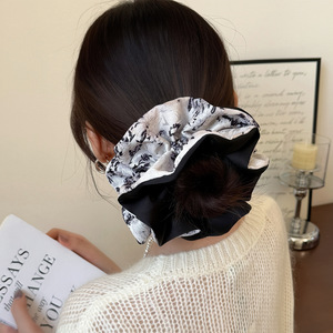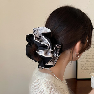 水墨提花缎面印花大肠发圈法式双层轻奢头绳头饰高级感头花发绳女