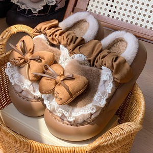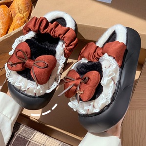 洛丽塔蝴蝶结棉拖鞋女秋冬季新款网红甜美可爱厚底居家外穿毛毛拖