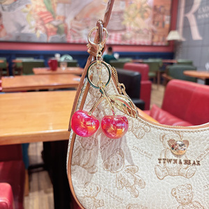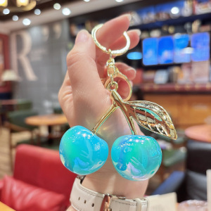 可爱炫彩金叶大樱桃钥匙扣创意车厘子包包挂饰精美时尚背包小挂件