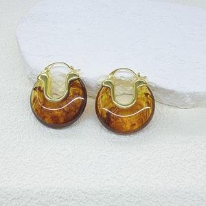 欧美个性冷淡风几何组合V形铜&塑料耳环耳扣 美拉德高级感U形耳圈