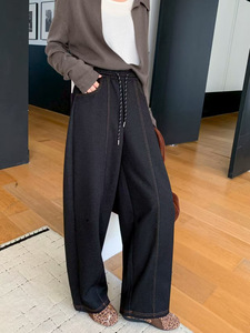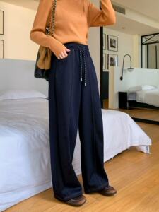 黑色高腰阔腿裤仿牛仔裤女秋季新款直筒显瘦拖地长裤潮一件代发