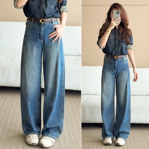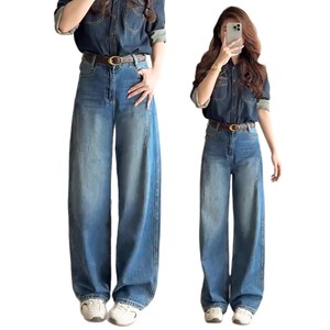 松弛感阔腿牛仔裤女2025新款弯刀裤宽松显瘦高腰长裤梨型身材裤子