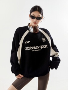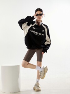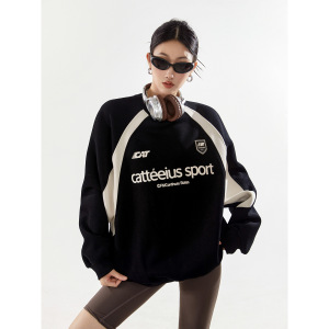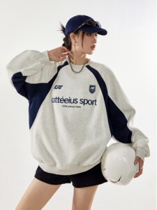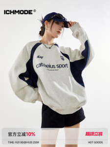 ICH MODE 美式复古圆领卫衣女春秋2025新款长袖上衣外套oversize