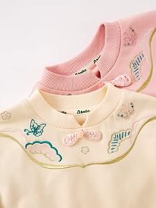 童贝童装2025年秋季新款女童国风卫衣刺绣盘扣新中式长袖上衣