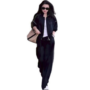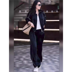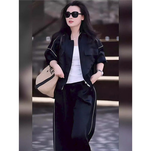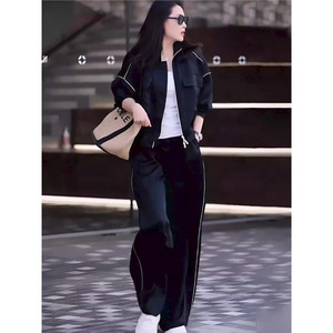 深圳南油休闲套装女2025秋新款长袖开衫外套高腰阔腿裤百搭两件套