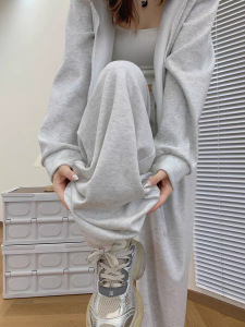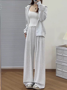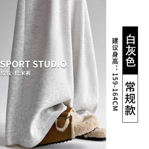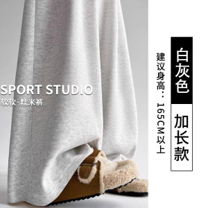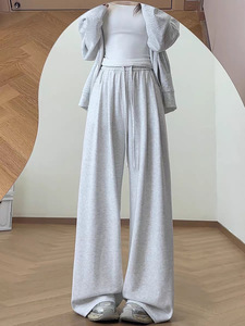 白灰色糯米裤女秋季2025新款高腰垂坠感软糯慵懒风窄版休闲阔腿裤