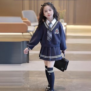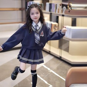 女孩JK裙子韩系卫衣套装中大童韩系拼色春秋新款半身裙长袖两件套