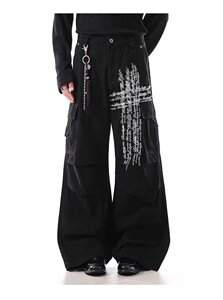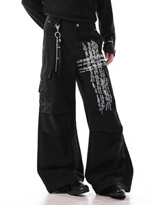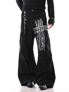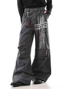 美式复古多口袋显瘦牛仔裤子男辣妹高级感字母印花宽松直筒拖地裤