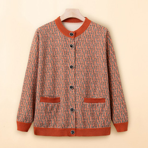 奶奶外套2025秋装新款老年人针织衫女妈妈洋气开衫老婆婆条纹上衣