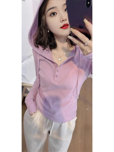 40支纯棉92棉8氨纶新款半开领连帽长袖T恤休闲宽松显瘦打底上衣