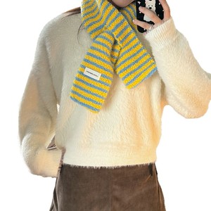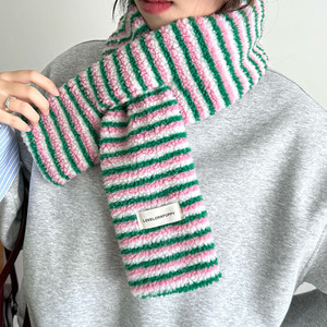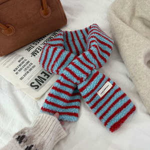 冬季新款泰迪绒自制撞色条纹穿孔小围巾女保暖韩系百搭学生围脖